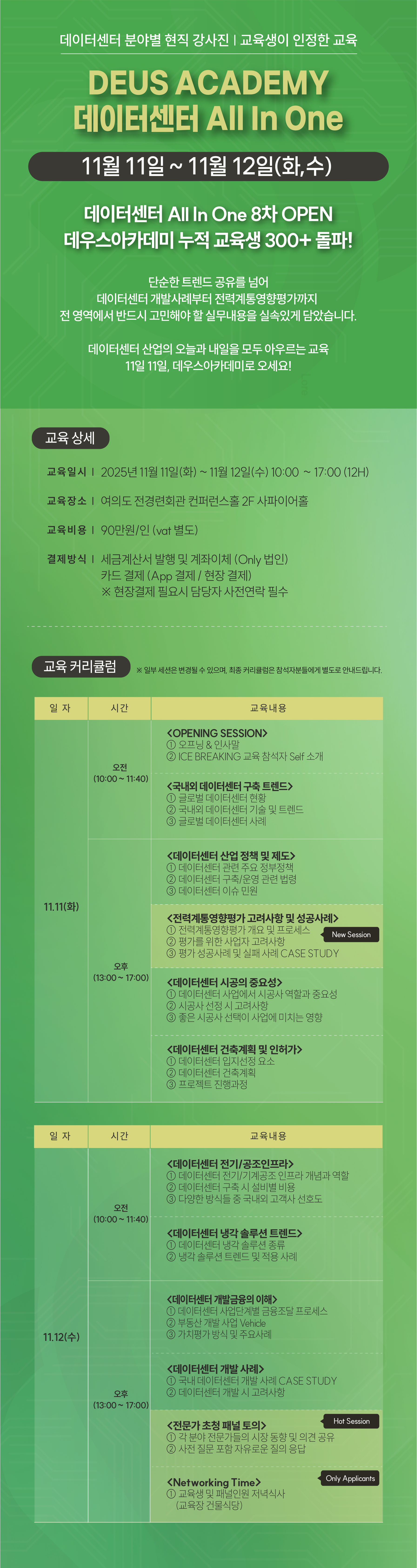 데이터센터 All In One 8차 교육 신청자 모집을 시작합니다.